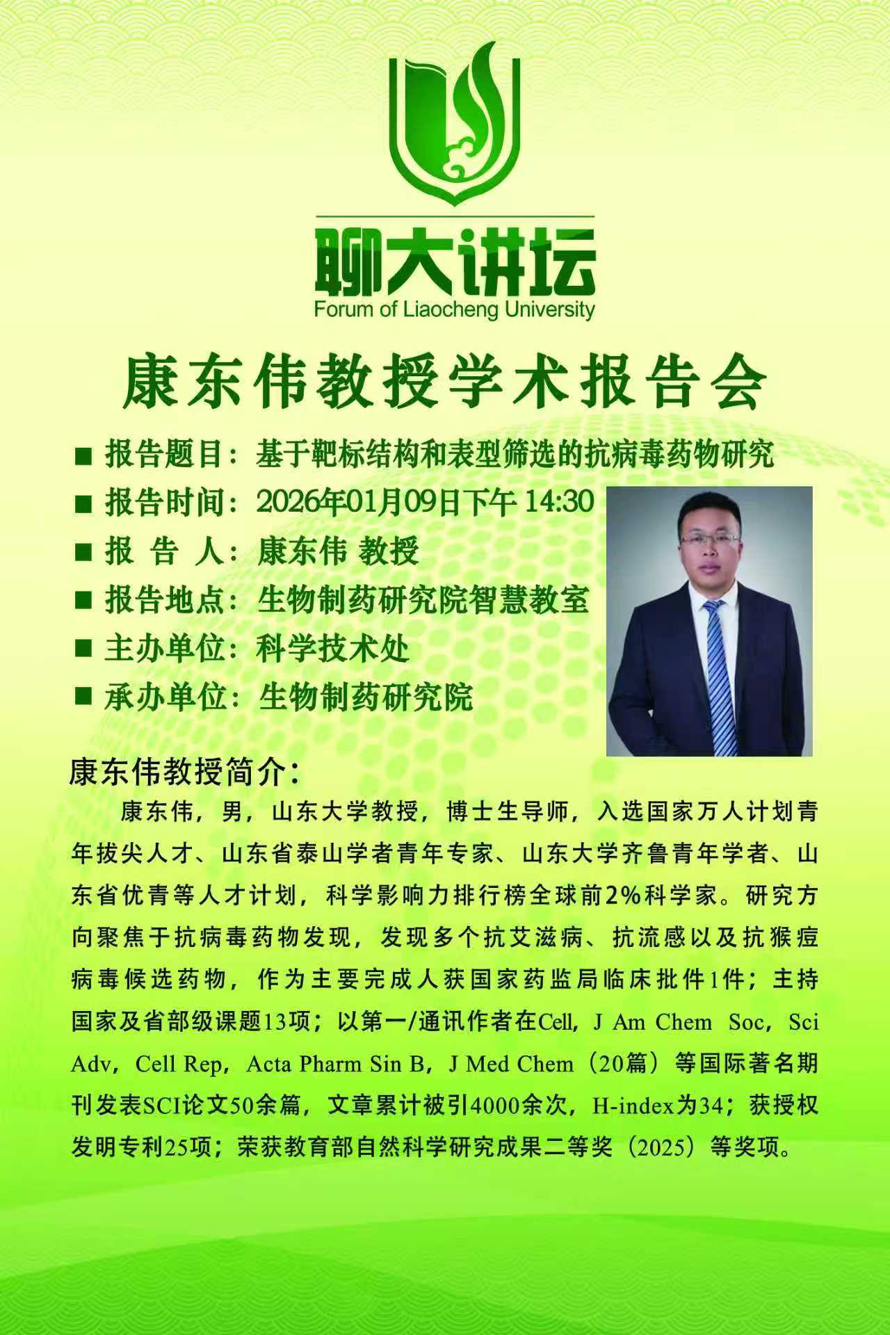 聊大讲坛-康东伟教授学术报告会